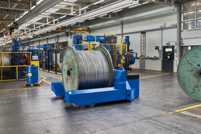 Ein Hersteller von Stahlseilen für Seilbahnen und Architekturprojekte suchte eine effiziente Methode, um schwere Seiltrommeln zu innerbetrieblich zu bewegen – und setzt nun auf den Genkinger Niederhubwagen. Die Lastaufnahme erfolgt mit Prismazinken, welche die schweren Seiltrommeln frei heben. Durch das kompakte Design hat der Bediener immer einen guten Überblick. Der Niederhubwagen übernimmt viele Aufgaben, die zuvor ein viel größerer Schwerlaststapler durchführte. Die Vorteile für den Kunden: